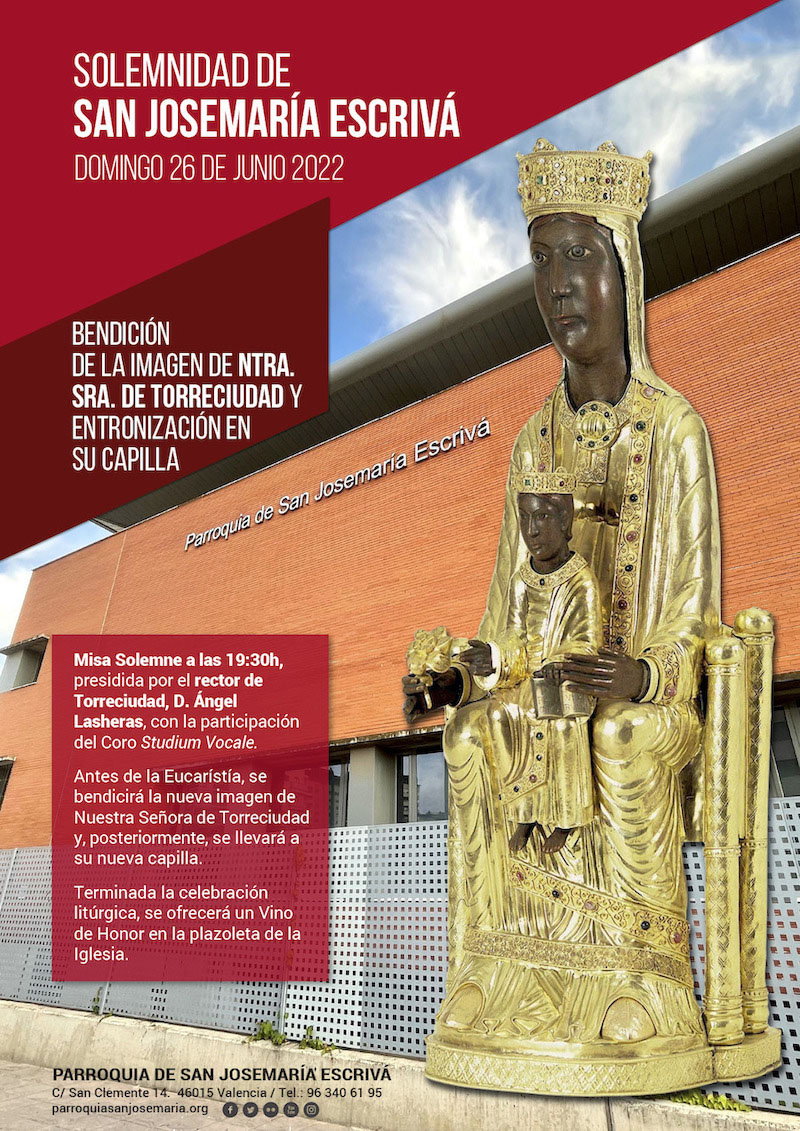 11:15h. SOLEMNE PROCESIÓN DE LOS RAMOS. Desde la Parroquia de Santiago Apóstol el Mayor de Beniferri hasta la Parroquia de San Josemaría, concluyendo con la Santa Misa.