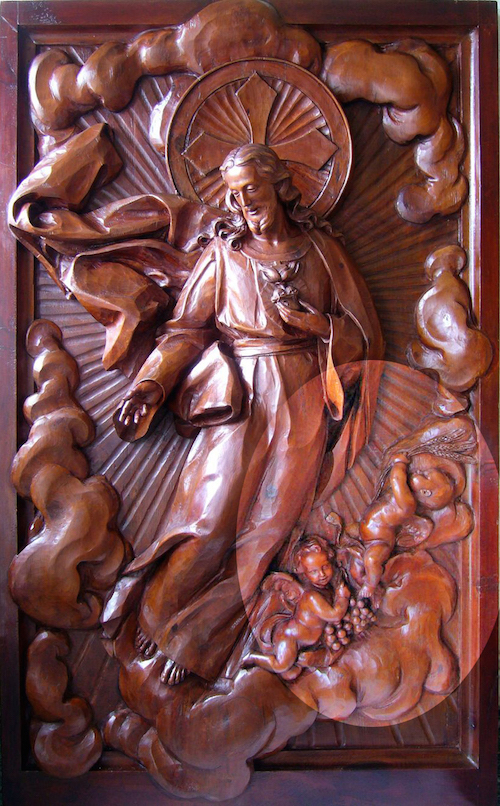 La imagen que os mostramos se trata de un altorelieve, donado a la parroquia, del Sagrado Corazón de Jesús tallado en madera barnizada y se encuentra en la Capilla de la Parroquia.