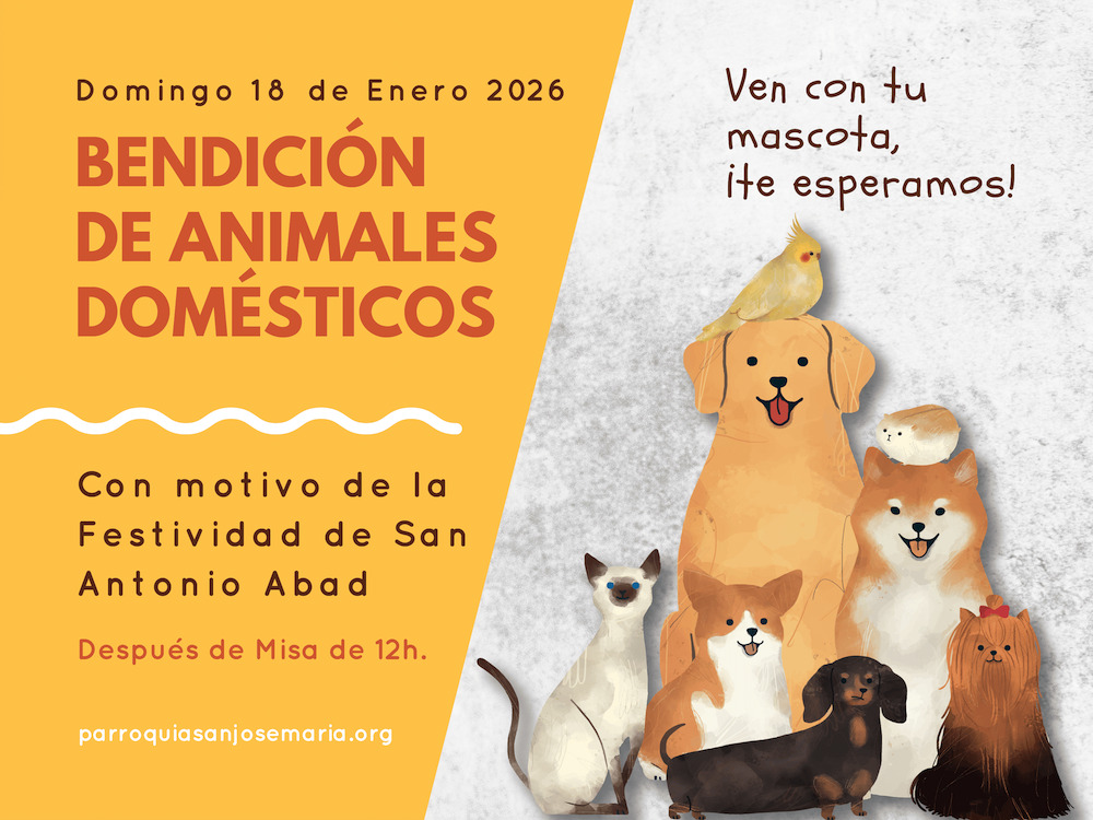 Con motivo de la Festividad de San Antonio Abad, Patrón de los animales domésticos, el próximo domingo 18 de enero, tendrá lugar después de la Misa de 12h, la tradicional Bendición de animales domésticos en la plazoleta de la parroquia. ¡Ven con tu mascota! ¡Te esperamos!