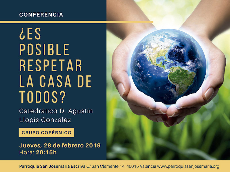 El próximo jueves 28 de febrero a las 20:15h, en el salón de actos de la parroquia, el Grupo Copérnico -dedicado al análisis de la relación Ciencia y Fe-, ofrecerá la Conferencia: “¿Es posible respetar la casa de todos?” Impartida por el Catedrático D. Agustín Llopis González. Universidad de Valencia.